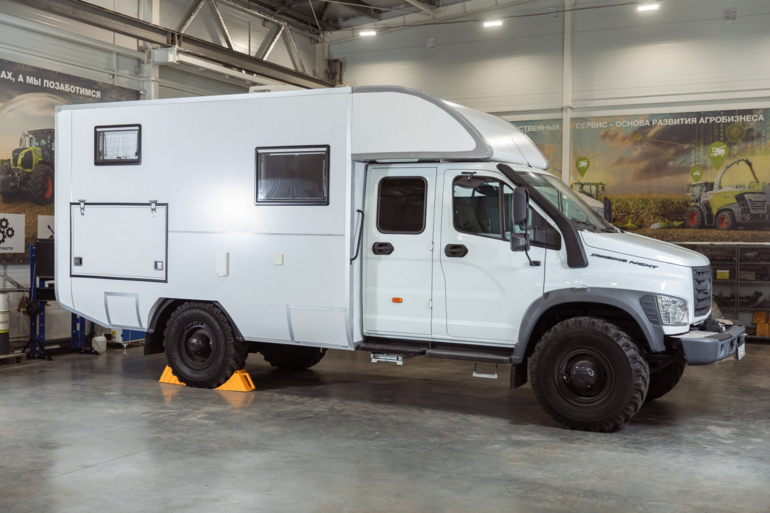 За основу взят полноприводный (4×4) шасси ГАЗ Садко Next, что делает этот автодом прекрасным выбором для покорения самых сложных маршрутов. Его сердцем является дизельный двигатель ЯМЗ-53443 мощностью 210 л.с. Запас хода впечатляет благодаря трем топливным бакам по 200 литров каждый. Надежность трансмиссии обеспечивает пятиступенчатая механическая коробка передач ZF.