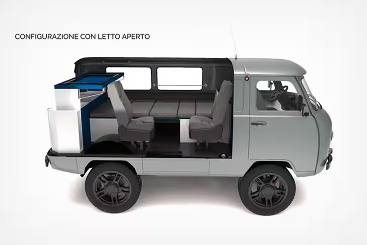 Итальянская студия Moltomeno.Design разработала необычный тюнинг Matrioska, который способен буквально за полтора часа превратить привычную УАЗ «Буханку» в современный кемпер. Весь процесс переоборудования занимает не более 99 минут, что делает этот комплект одним из самых быстрых решений на рынке для создания дома на колесах.