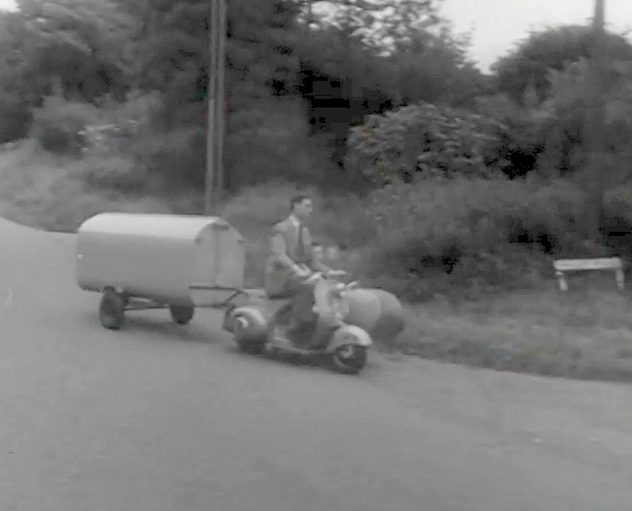 Фото: YouTube / British PathéВ середине прошлого века, когда автомобили были роскошью, а скутеры - доступным транспортом, инженеры задумались: как сделать путешествия доступнее для всех? Так появился Tentavan - компактный, легкий и удивительно функциональный караван, который складывался до размеров небольшого прицепа. Его можно было легко прицепить к мотоциклу или скутеру, а в разложенном виде он превращался в полноценное укрытие для ночлега.