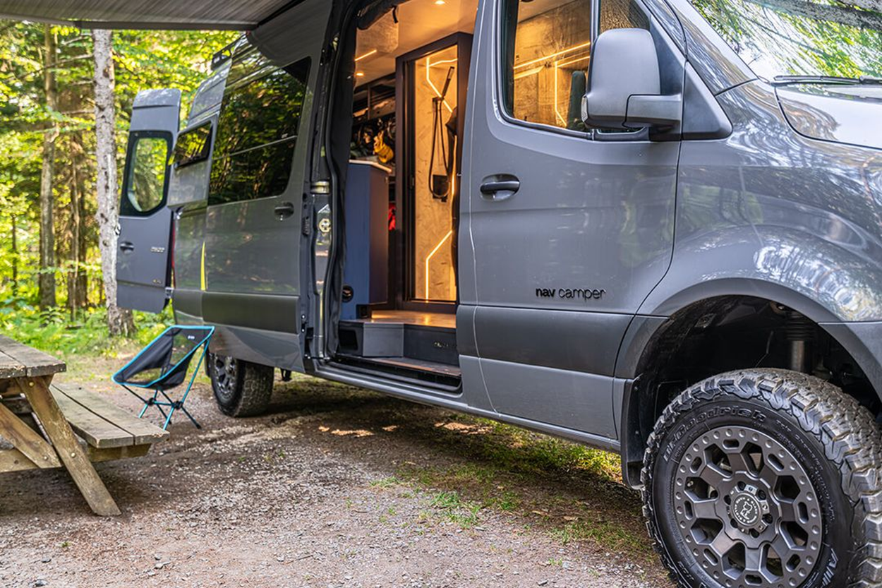 Базой для этого кемпера стал Mercedes-Benz Sprinter 2500 2021 года с удлиненной колесной базой 170 дюймов и полным приводом 4x4. В 2022 году специалисты Nav Camper провели глубокую кастомизацию, сделав автомобиль не только максимально комфортным, но и полностью автономным для длительных поездок.